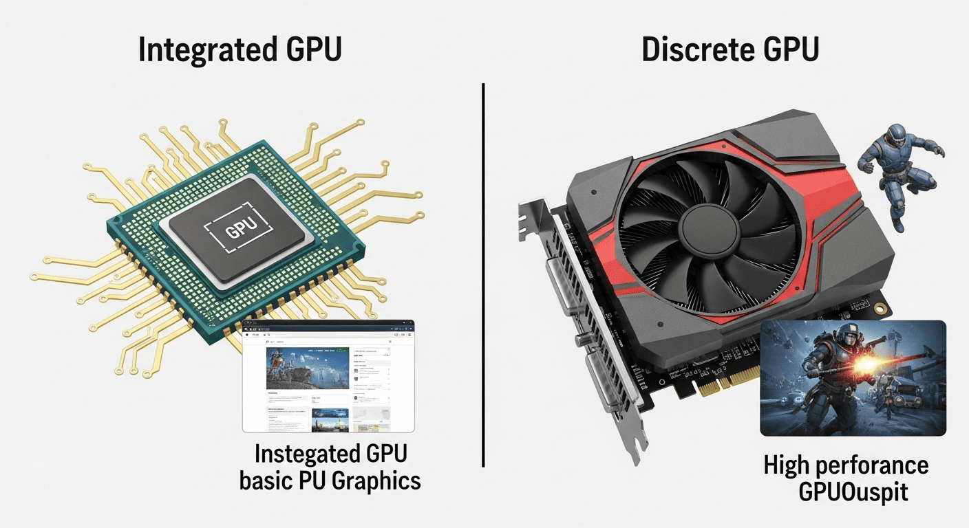 - 内蔵GPU (iGPU): CPUの中に組み込まれています。Web閲覧や動画視聴、軽い事務作業ならこれで十分です。近年の内蔵GPUは性能が向上しており、軽いゲームならプレイできるモデルもあります。消費電力が少なく、価格が安いのがメリットです。